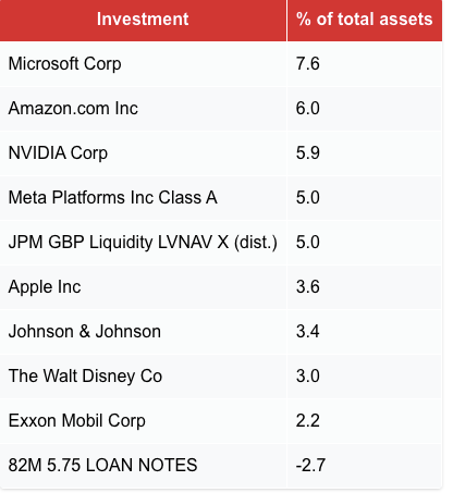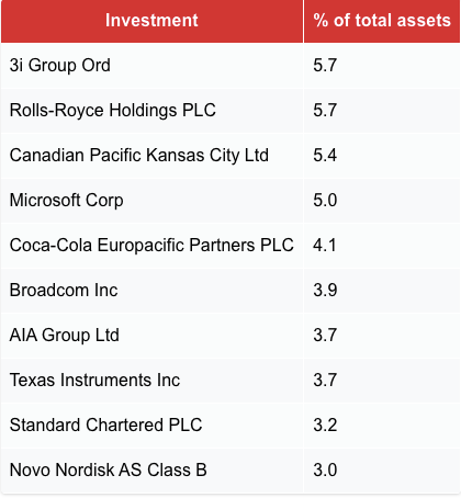 Another piece of data that can be obtained from the AIC website is the latest top 10 holdings for each investment trust. Here are the top 10 holdings for the three trusts that we are including in the model portfolio.